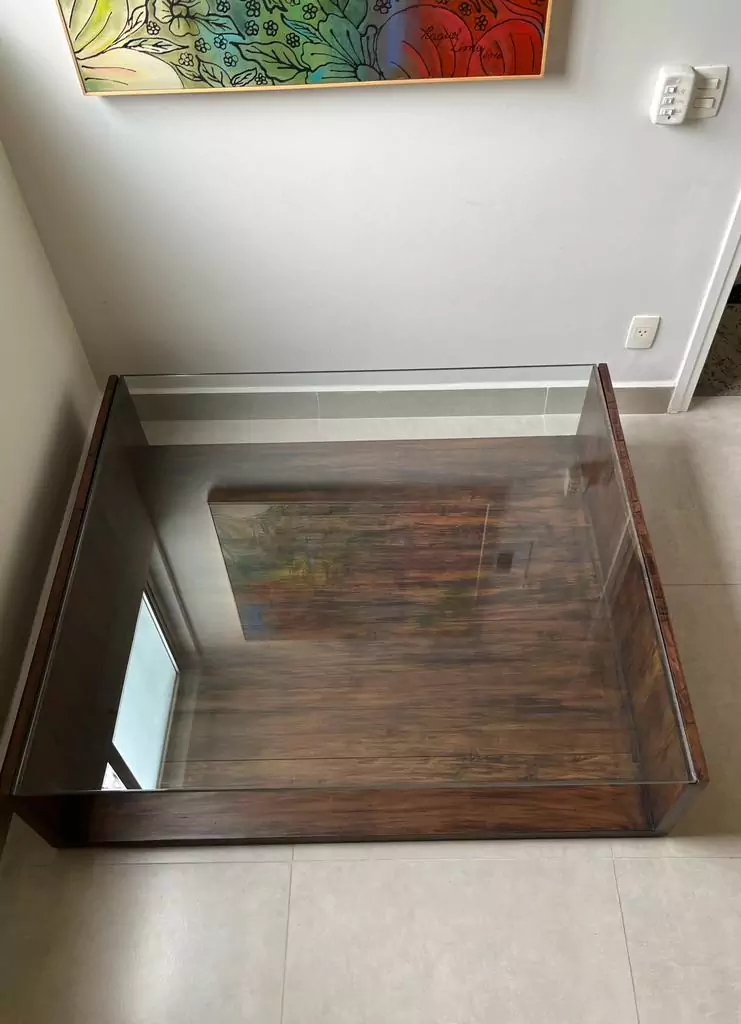 Mesa de Centro 1,40 x 1,20m em Madeira Maciça e Vidro (3346)